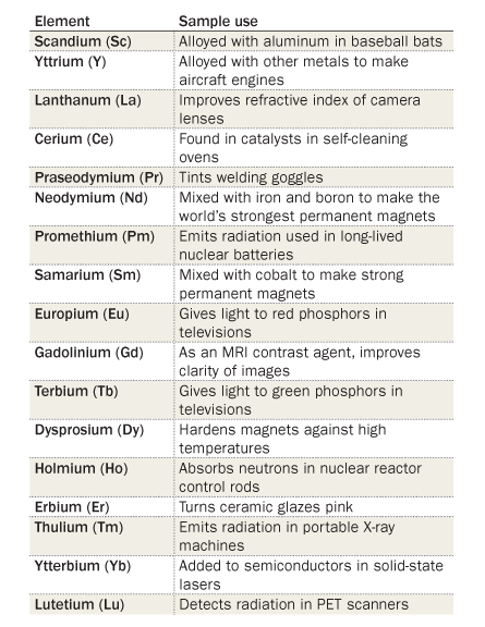 For some applications, rare earth elements may be simply irreplaceable. The phosphors used in color televisions and other displays with cathode-ray tubes get their brilliant reds from europium compounds. This rare earth’s electrons jump between energy levels and emit light in ways that can’t be mimicked by any other element in the periodic table.