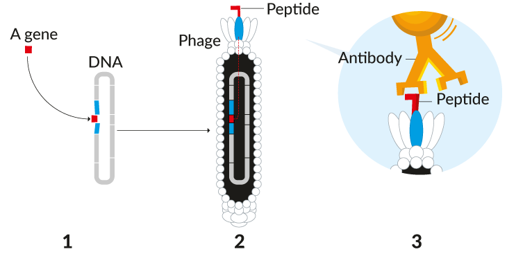 In 1985, Smith manipulated bacteriophage DNA to create a phage carrying a piece of protein, called a peptide, that wouldn’t naturally occur on its surface. He then used a peptide-binding molecule to pick this bacteriophage out of the crowd. Smith’s method of meddling with bacteriophage DNA is the foundation of phage display. Since his seminal work producing a peptide-bearing phage, other researchers have adopted his method to create phages that harbor other biomolecules, like antibodies.