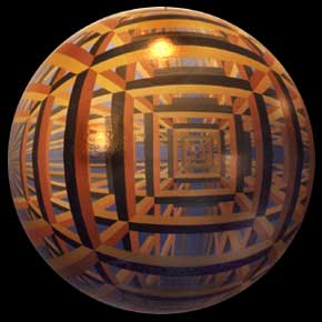 Termes has painted all sorts of scenes on the surface of spheres, including the interiors of famous buildings, many different geometric patterns, and various imaginary “dream” worlds (see http://www.termespheres.com/gallery1.html).