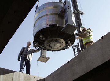 The flywheel is made up of concentric shells, each one prestressed in a different way to withstand centrifugal forces that vary greatly from the axle to the rim. The new machine rests inside a 2.1-m-tall steel containment vessel that houses the electromagnetic suspension and a magnetic system that can spin the flywheel at up to 15,000 rotations per minute.