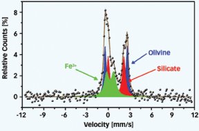 The biggest surprises, says Squyres, came from another instrument, the Mossbauer spectrometer, which detects iron-rich minerals. The soil spectra reveal the presence of the mineral olivine, which typically is found on Earth in volcanic rock. The scientists now plan to look for signs of olivine in nearby rocks, including one dubbed Adirondack. By comparing data from the soil and the rocks, the scientists may be able to determine whether the soil is finely ground rock.