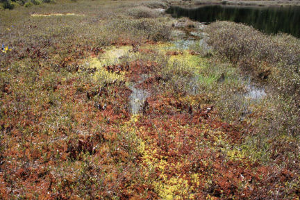 No, and that’s part of the beauty of this kind of bog, he explains. As glaciers scoured this landscape 10,000 years ago, they gouged big holes in otherwise firm ground. No rivers ran into or out of them. Filled with rainwater and snowmelt, they became water worlds virtually isolated from the rest of the local hydrology. The bog we are visiting is “like a sealed bowl,” Gotelli says.