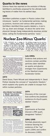 “So far nothing has pointed in that direction, of another layer of constituents underlying the quarks,” Gell-Mann says. “But you can’t rule it out completely, of course. We know that the present theory, the standard model, is a low-energy approximation of some kind to a future theory, and who knows what will happen with a future theory?”