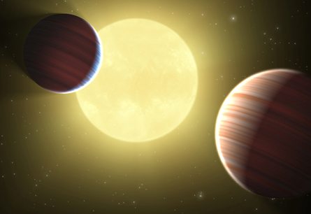 Using NASA’s Kepler spacecraft, Matthew Holman of the Harvard-Smithsonian Center for Astrophysics in Cambridge, Mass., and his colleagues found two planets orbiting a dim sunlike star dubbed Kepler 9, some 2,200 light-years from Earth. Each planet blocks a tiny amount of starlight when it transits, or passes across the face of the star.