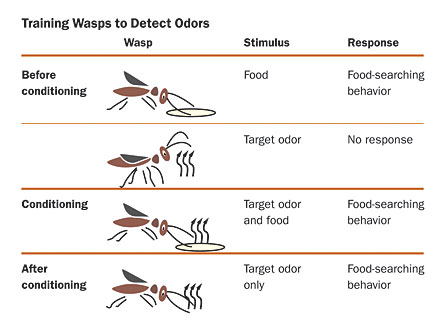 “Another advantage is that you don’t have to worry about the wasp trying to provide a response simply because it wants to please its owner,” he says. Still, not all scientists are convinced that the insect sniffing devices will fly. University of Hawaii biologist M.E. “Jeff” Bitterman, a pioneer in the field of honeybee learning, says insects such as bees are constantly picking up on new chemical cues in the environment. Even when trained to only one scent, the bees will generalize and begin to respond to other similar scents, he says.