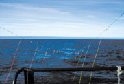 that streamers dancing from two strings suspended behind the boat can keep