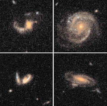 One of the new surveys looks at the panorama of galaxy shapes, masses, colors, and sizes that existed when the cosmos was about half its current age—a critical time when galaxies began to take the form they’re in today. The other survey also sizes up galaxies but uses some gravitational sleight of hand to expose the dark side—the vast concentrations of dark matter that provide the framework for all the visible stars and gas in the universe. Dark matter, though unseen, makes up more than 90 percent of the mass of the universe, theorists say.