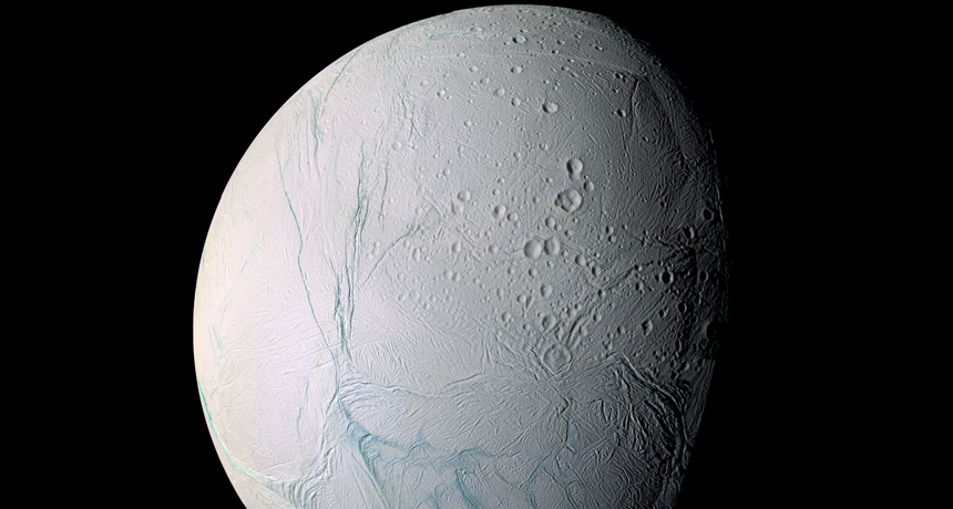 For a long time, astronomers thought the 500-kilometer-wide Enceladus was an unchanging, dead world. But the Cassini spacecraft, which arrived in 2004, found an active moon. Geysers shoot particles of salty water ice through fissures that dot the southern hemisphere. The fissures expand and contract in rhythm with the tides of Saturn (SN Online: 7/31/13). Heat wells up from the moon’s interior through the cracks. Putting these characteristics together, many astronomers suspected that a sea of liquid water lurked beneath the ice. But those suspicions were based on observations of the moon’s surface.