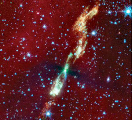 This infrared portrait of an embryonic sunlike star reveals an early, crucial step in the process of planet formation. According to most theories, the spinning cloud of gas and dust from which a star arises should begin to flatten as a planet-forming disk of material takes shape.