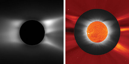 Three months from now, a pair of spacecraft is scheduled to begin simultaneously broadcasting to Earth visible-light and ultraviolet images of the sun. Like SOHO, each of the craft has an occulting mask, or coronagraph, that blocks the glare of the sun. This creates an artificial eclipse that permits the observatories to directly view the corona.