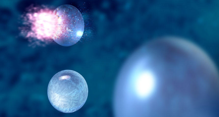 HIT AND RUN By zapping supercooled droplets with X-rays, physicists probed liquid water about 46 degrees Celsius below its freezing point, as seen in an illustration.