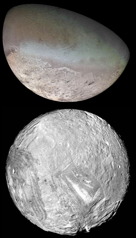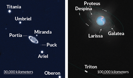 THE OTHER BLUE PLANETS Uranus (left) and Neptune (right) have not been visited since Voyager 2 sped by in the late 1980s. Many researchers argue that it’s time to go back.