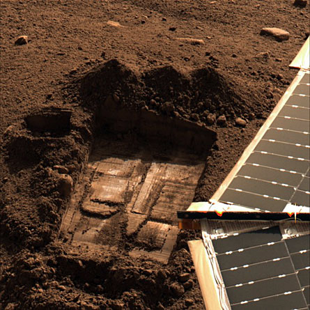 Traces of perchlorate were detected in MECA, the lander’s Microscopy, Electrochemistry and Conductivity Analyzer’s wet chemistry labs, which test for salts in the soil of the Red Planet. Two tests confirmed the existence of the chlorine-oxygen compound, which commonly exists in salt form with iron, calcium or magnesium.