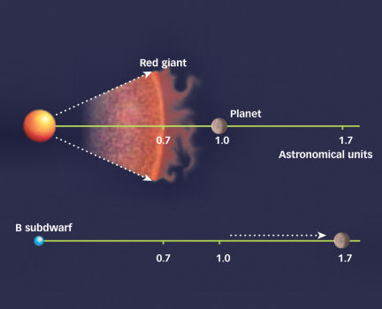 Earth will face a similar challenge in about 5 billion years, when our sun swells to become a red giant star. As its outer envelope puffs up, the sun will swallow Mercury and Venus, but Earth’s fate is uncertain, theorists say.
