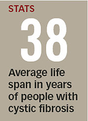Patients with cystic fibrosis have a mutation in the CFTR gene. The protein normally encoded by this gene shuttles ions in and out of cells, ushering needed chemicals through the cell’s membrane. But because cystic fibrosis patients’ CFTR protein is missing or defective, the shuttling goes awry and sets off a process that leaves patients’ lungs cluttered with mucus. The ultimate result is the respiratory failure characteristic of this disease.