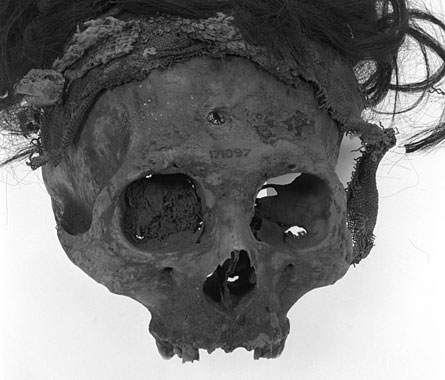 Knudson and her colleagues studied 16 trophy heads found at six Nasca sites by the late anthropologist Alfred Kroeber in 1925 and 1926. All the heads had been modified in the same way, with a hole drilled in the forehead for a carrying cord. Many Nasca trophy heads contain comparable forehead holes. Kroeber’s finds are kept at The Field Museum in Chicago.