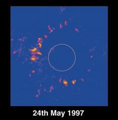 The pictures, recorded over 80 weeks, reveal for the first time how the gas flows out from a star during this late stage, which lasts only about 10,000 years, notes Athol J. Kemball of the National Radio Astronomy Observatory in Socorro, N.M. Exactly how such stars lose mass remains a mystery, but “this monitoring campaign has allowed a movie of the gas motions to be produced, which provides new insights into how this might occur,” he notes. Instead of ejecting the gas equally in all directions, the star expels the material asymmetrically, just as the sun does during localized storms.