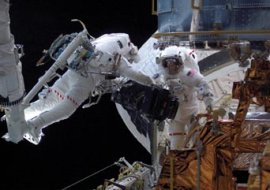 DELICATE WORK. Astronauts Michael J. Massimino and James H. Newman install new Hubble parts during last week’s second space walk. NASA