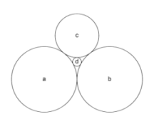 Given four mutually tangent circles with curvatures a, b, c, and d, the Descartes circle equation specifies that 2(a2 + b2 + c2 + d2) = (a + b + c + d)2.