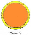 Theorem IV: For a regular hexagon, the ratio of the areas of the outer circle and the inscribed circle is 4:3. |
