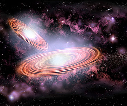 Two astronomers may be seeing double. They report evidence that a galaxy about 4 billion light-years from Earth houses not one, but two giant black holes. Moreover, the duo might be separated by only one-third of a light-year — less than 10 percent of the distance between the sun and its nearest star system, Alpha Centauri.