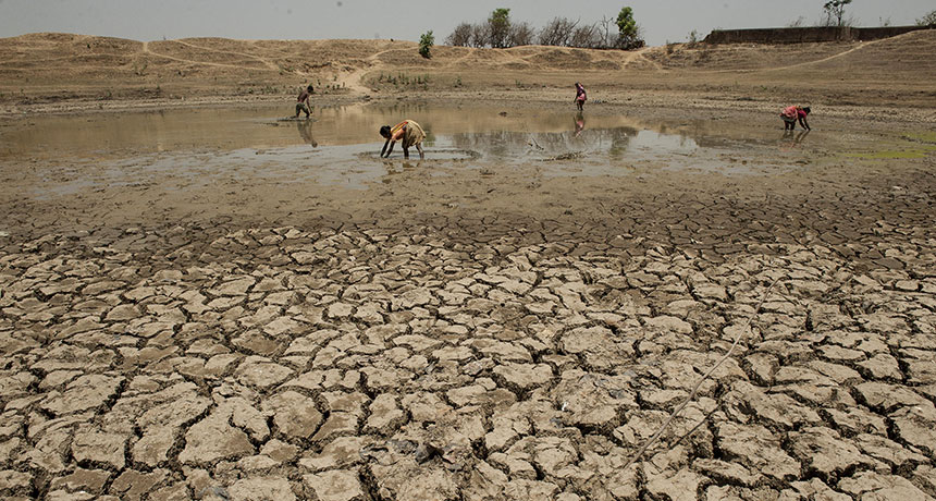 GONE DRY Villagers try to catch fish in a dried-up pond in West Bengal, India. A deadly heat wave that swept across Asia in 2016 led to widespread drought that affected hundreds of millions in India. Such an intense and prolonged heat wave, scientists now report, could not have happened without human-caused climate change.