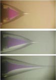 To make the coaxial jets, Loscertales and his coworkers use hollow needles up to a millimeter in diameter. The needles are nested to create concentric nozzles from which different liquids can flow. At least one of the fluids has to be electrically conductive for the technique to work.
