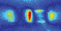 In the past, experimenters have shone microlaser beams through minute holes to create beams of nanoscale dimensions, notes electrical engineer Kenneth B. Crozier of Harvard University. However, the resulting beams were weak. To overcome this problem, he, Harvard physicist Federico Capasso, and their colleagues have interrupted a beam with a pair of close-spaced, rod-shaped gold patches. Fabricated right where the beam emerges from an infrared microlaser, the patches act jointly as a tiny antenna that focuses the laser light.
