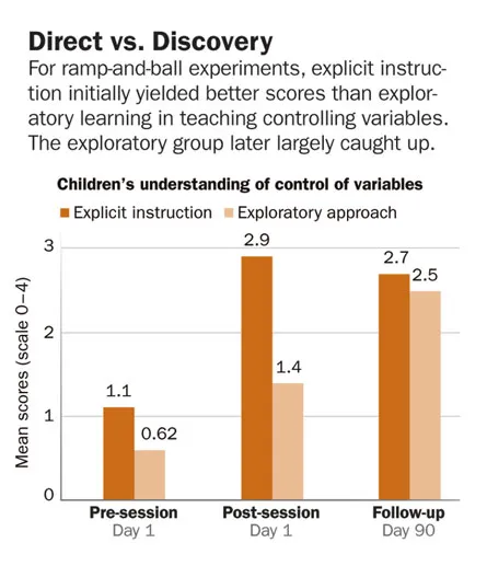“Direct instruction on the control-of-variables strategy confers only a temporary benefit over discovery learning,” says Deanna Kuhn of Columbia University.