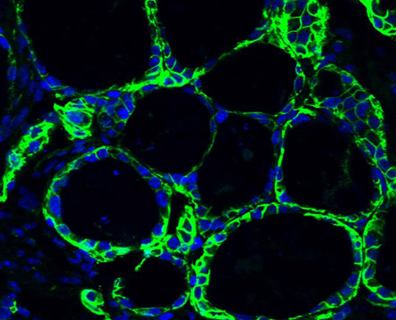Genetically engineered embryonic stem cells in the lab turn on a developmental program similar to the one thyroid glands go through in the body, Francesco Antonica of the Université Libre de Bruxelles in Belgium and colleagues report online October 10 in Nature. Cells following this thyroid development program form hollow, hormone-producing spheres like those found in a normal thyroid gland.