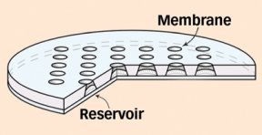 The paper-thin, dime-size chip contains a series of tiny reservoirs. Each reservoir can store a single drug dose and is sealed with a membrane made from a second, tailored polymer. By altering the length of this polymer’s molecular chains, the researchers can program the membranes to burst and release the reservoir’s contents at specific times.