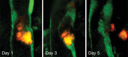 Tiny blood vessels in the brains of mice have a novel way of dealing with clots — they pack them up and shove them out, right through the vessel wall. This never-before-seen clearance maneuver, reported May 27 in Nature, gets blood flowing again and prevents cell death in nearby brain tissue.