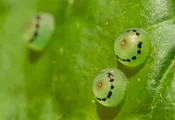 Butterfly eggs These eggs can be things of beauty, with ribbing and fluting pointing the eye toward a little opening called the micropyle. Through the micropyle, sperm enter and fertilize a typically oval or round egg as it is being deposited on a leaf. (Common green birdwing egg shown.)
