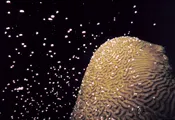 Coral eggs In a burst of brightly colored bulbs, corals release their eggs in synchrony. The eggs are full of waxy fat that fuels development, and makes the eggs float upward toward the water’s surface. When eggs meet up with sperm, the youngsters are carried by ocean currents to new homes.