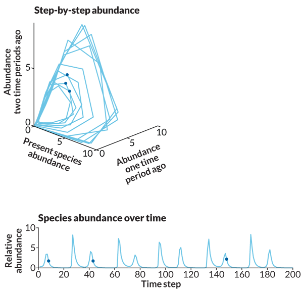 The upshot of nonlinearity is that seemingly disparate phenomena like ocean temperatures and fish populations can be connected even if they don’t appear to be. As a result, you can’t try to manage just one part of the environment as if it isn’t being prodded and perturbed by everything around it, Sugihara says. “It’s kind of wishful thinking that the world is a stable place,” he says.