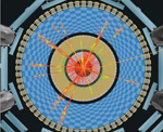 LHC By smashing protons together at high speeds, the Large Hadron Collider is re-creating energies present just after the Big Bang. In the spew of particles emitted (computer-generated image shown), scientists hope to spot signs of supersymmetry and find evidence for string theory — possibly pointing to a theory that unifies the forces of nature. The collider, in a 27-kilometer tunnel straddling the border of Switzerland and France, began regular operations in 2010 but has yet to operate at full energy.