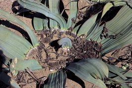 A Welwitschia seed that avoids mold germinates by sending a taproot down rapidly, drilling perhaps a meter in just a few weeks. It’s a life-and-death struggle to find moisture.