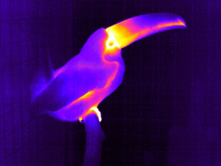 To test the cooling properties of bills, the researchers focused on the toucans with the largest bill, the toco toucan (Ramphastos toco). The bill of an adult bird can account for up to half of its body surface area. Under the hard, hornlike outer covering of the bill lies a network of blood vessels.