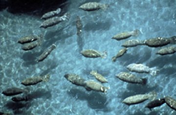 This bloom began last January in the Gulf of Mexico off Tampa. Currents moved it to coastal inlets, bays, and the mouths of rivers, where boaters began reporting dead manatees in March. K. brevis blooms in Florida can last from 30 days to 18 months.