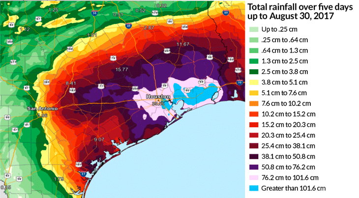 Meteorological forecasts already reliably track where large amounts of rain fall, helping communities prepare for potential flooding. But these forecasts can’t always predict where that water will go or how it will impact area waterways. So Milliner’s team started with a question: “Once Harvey deposited that water, what happened to it?”