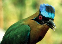 A blue-crowned motmot fits the stereotype that tropical birds are flashy dressers.