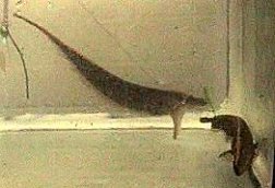 Tallarovic and Harold Zakon of the University of Texas at Austin recorded electric frequencies as one knifefish darted in an unfriendly way toward another fish or a dummy emitting an electric signal. The lunger often locked jaws with its opponent or snapped at its electric organ, as if trying to bite it off (view the video clips here).