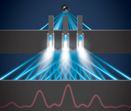 In the new study, Sinha and colleagues made three parallel slits in a stainless steel plate, each 30 micrometers wide and 300 micrometers tall. Light was sent through the slits, and detectors on the other side tallied up the photons that passed through each. A blocking mask allowed the researchers to open and close the three slits independently.