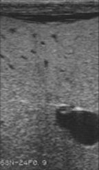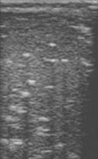 This udder image reveals injected gas that’s probably isobutane. Note the black vertical streaks, called shadowing, among the white bubbles deep in the udder. As a result of screening for this form of tampering, gas injections appear to be rare at current dairy competitions in the United States.