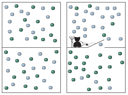 Maxwell wondered whether a hypothetical microscopic entity tracking the particles flitting around two adjacent containers could separate the fast-moving particles from the slow ones. The demon’s actions would minimize the system’s total entropy, a violation of the second law, and create a temperature difference that could be exploited to do work for free.Koski’s team built a demonic device that deprived an electronic circuit of heat and thus its entropy as well. The demon did its job: A visitor to the lab observing the experiment would think the circuit was violating the second law. But the researchers also noticed that the demon paid a price for its transgressions. As it performed its dirty deed, the demon itself heated up. The total entropy of the circuit and the demon together actually increased, just as the second law requires (SN Online: 12/1/15).