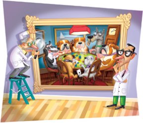 The researchers first noted the time shown on the grandfather clock in the classic barroom-wall painting. Considering the bags under the eyes of the smiling collie, the scene undoubtedly occurred after midnight, say René Bonchien and his colleagues. In letters to his wife, Coolidge noted that the idea for the painting came to him on a summer day, the scientists point out. In another telling clue, the St. Bernards drink bottled beer, while the two bull terriers share a glass of whiskey as well as a card under the table. “Dogs mix beer with hard liquor only on special occasions, even when playing cards,” Bonchien states. “I’m thinking Fourth of July.” The terriers’ thick, studded collars were popular around 1921, shortly before ruffled collars for small dogs became a national fad during the Roaring Twenties, he adds.