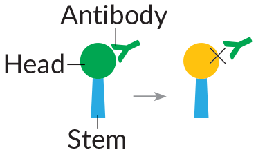 Other researchers have stabilized the stalk by attaching a new hemagglutinin head — a lollipop flavor that the human immune system has never tasted. In this case, researchers from the Icahn School of Medicine at Mount Sinai in New York City took tops from two flu strains that circulate only in birds, and connected each one to a human hemagglutinin stalk. This experimental vaccine consists of two doses. The first dose prompts the immune system to make antibodies against the stalk with the first top, and a second dose produces a second round of antibodies against the stalk with the second top. The idea is that the abundance of stem-focused antibodies — amplified from the two shots of vaccine — will come to the rescue during a natural infection from a virus that possesses a third, totally different head.
