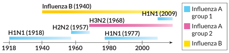 Sometimes, in the gene shuffling with viruses in birds and pigs, the changes are so great that the flavor changes completely. Those are pandemic years, when there is so little residual immunity that a large portion of the global population falls ill from the new virus. The devastating 1918 flu, which killed an estimated 50 million people globally, was caused by such a drastic genetic shift (SN Online: 4/29/14). The most recent pandemic occurred in 2009, with the appearance of the “swine flu,” so named because the virus was first found in pigs. By one analysis, it caused between 148,000 and 249,000 deaths around the world.