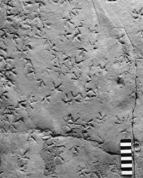 The footprints also record birdlike behavior. In one of the fossil-bearing sediment layers, Melchor and his colleagues found several hundred tracks carpeting an area of about 2 square meters. The tracks were randomly oriented, as if the creatures that left them had skittered back and forth in search of food. The footprints were made in the fine-grained silt of an evaporating pond, says Melchor. That suggests that all of the prints were made during a short interval, probably no longer than a week. Variety in the size of tracks suggests that several different animals trod the transient mudflat.