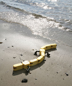 QUICK DIP. A salamanderlike robot strolls on the beach after a swim in the waters of Lake Geneva in Switzerland.